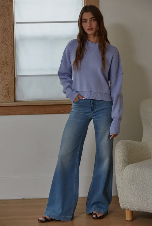 The Leda Pullover in Dusty Blue